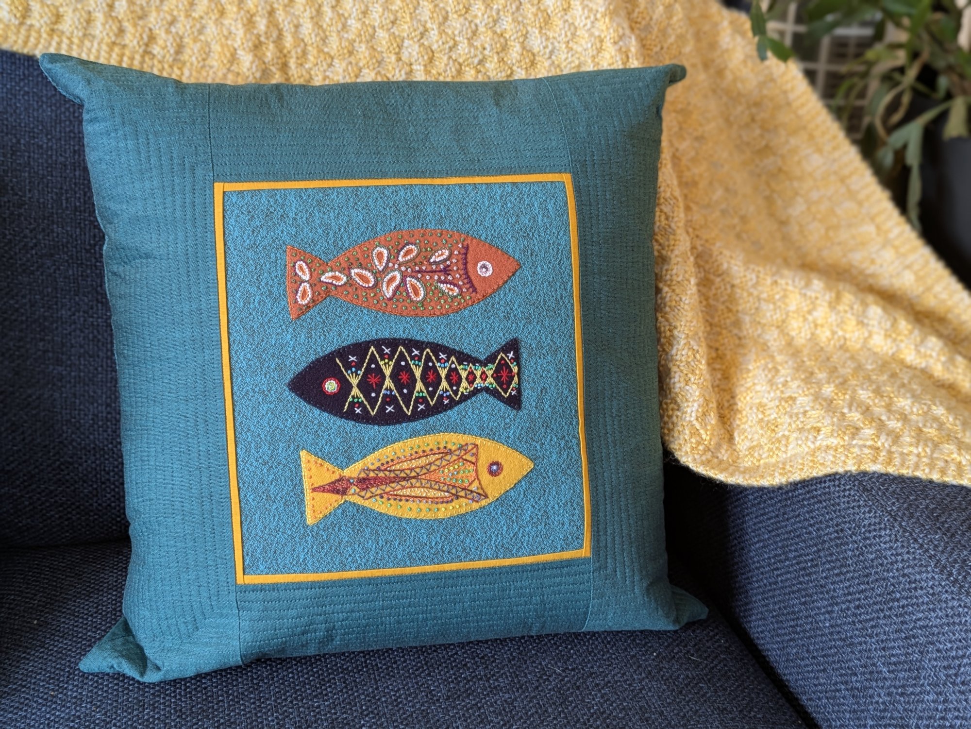 Wool Appliqué Fish Pillow (or Hanging)