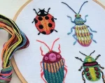 Have fun playing with classic hand embroidery stitches with this unique bug sampler! Each beetle is created using interesting stitch combinations with a bright, bold color palette. This kit features quality embroidery supplies including cotton thread, printed fabric, a beechwood embroidery hoop and embroidery needles.